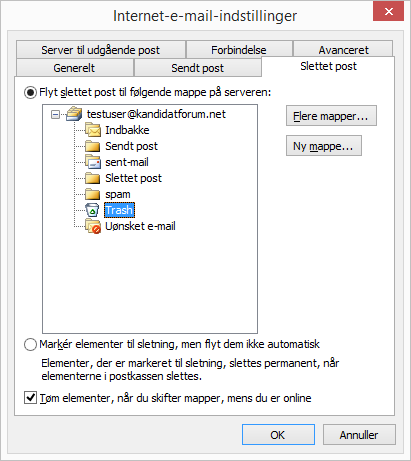 17. Vælg fanen Slettet post og vælg Trash folderen: