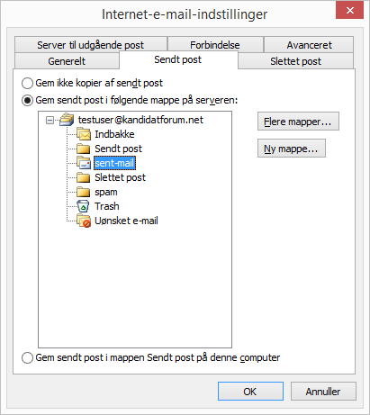 16. Vælg fanen Sendt post og vælg sent-mail folderen: