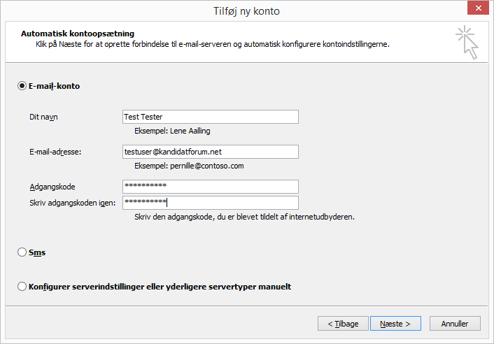 Skridt for skridt vejledning til opsætning af mail i Microsoft Outlook Med IMAP og SMTP.