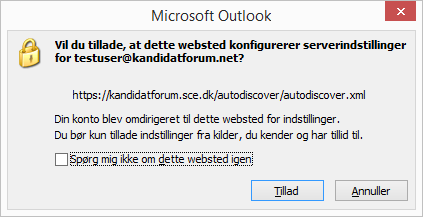3. Der vil muligvis komme en sikkerhedsadvarsel som fortæller at certificatet er udgivet til et andet servernavn. Sig Ja til at fortsætte.