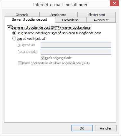 8. Se om indstillingerne til Server til udgående post er rigtige.