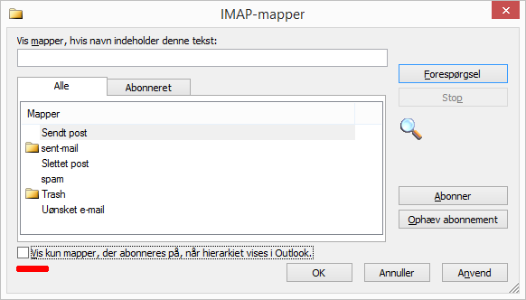 12. Fjern fluebenet i vis kun mapper der abonneres på ... for at få vist alle mapper: